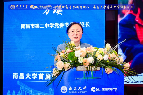江西省南昌市第二中学党委书记、校长万瑛做了《新时代双高协同育人如何善作为》的主题报告。在会上,她对拔尖创新人才协同培养的探索历程进行回顾,并指出基础教育阶段是一个人个性与创新意识形成的重要时期,是拔尖人才培养的奠基阶段。她介绍,从早期少数早慧儿童的培养到优秀人才培养,再到培养勇攀科学高峰、推动科学文化发展的优秀拔尖人才,我们对拔尖创新人才协同培养的认知愈发深刻。