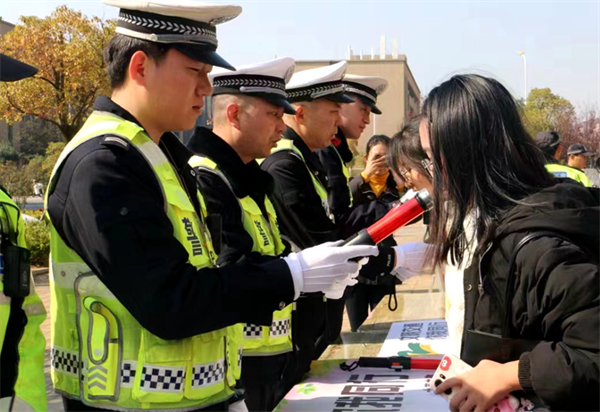 文明交通,你我同行。12月1日下午,在江西师大科技学院开展的122“全国交通安全日”宣传教育活动上,通过安全展板、酒精测试体验、现场互动问答、交警铁骑巡演等形式,普及安全知识,让学生深入掌握交通安全法规,增强出行安全意识。在酒精测试的体验活动上,交警强调了酒驾、醉驾的危害性,对相关法律法规进行了宣传、讲解。交警与同学们进行互动问答,引导学生从“耳边听”,延伸到“心中记”,养成遵规守纪,文明通行的良好习惯。