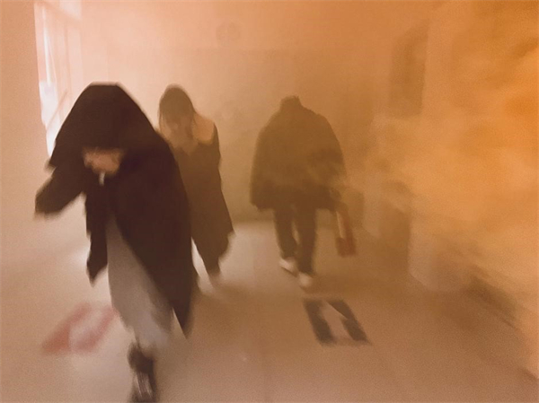 本次消防应急演练通过在宿舍楼栋随机放置发烟装置模拟宿舍突发“火灾”。下午14时,随着一声令下:“2024年春季消防安全应急演练正式开始!”,巡查员发现“火情”、立即上报,启动应急预案、开启应急广播,按照“安全第一,就近逃生”的疏散原则,引导楼内师生沿应急疏散安全路线快速撤离,等待救援力量赶往现场。