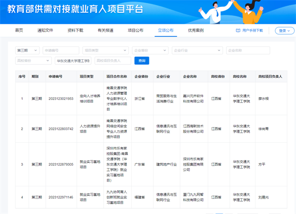 高校学生司印发《关于公布第二期供需对接就业育人项目立项名单的通知》(教学司函〔2024〕23号),南昌交通学院4个项目获批金博宝最新官方网站查询网址