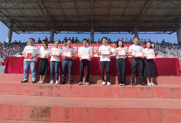 张小桃宣读2024级新生军训先进集体和先进个人的表彰决定。与会领导为“军训先进集体”“军训优秀辅导员”“军训优秀教官”“军训先进个人”等先进集体、个人颁奖。