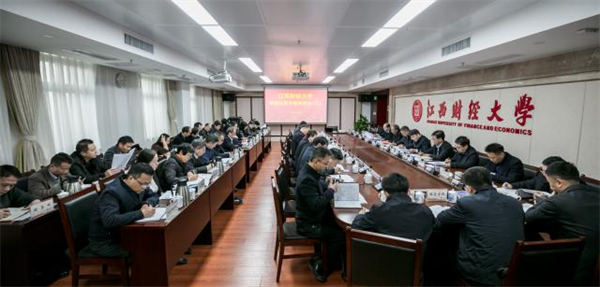 近日,江西财经大学召开“纵深推进机构和岗位改革”转型改革专题推进会。校党委书记刘耀彬,校长邓辉,副校长阙善栋、袁红林、李春根、谢花林出席会议,校属各单位、各部门主要负责人参加了会议。邓辉主持会议。