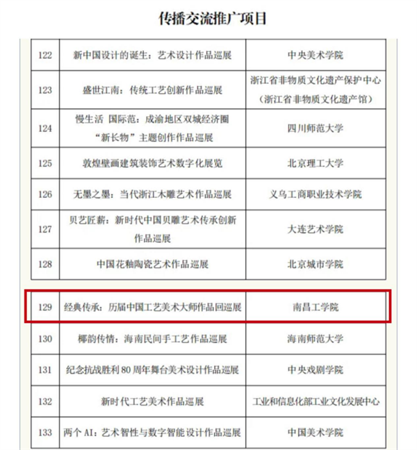 近日,经国家艺术基金专家严格评审,国家艺术基金理事会批准,南昌工学院·中国工艺美术大师博物馆《经典传承——历届中国工艺美术大师作品巡展》入选《国家艺术基金2025年度资助项目》。