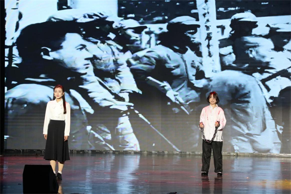宣讲会结束后,《碧血伉俪两地书》作品中讲述者的原型周毛春与同学们合影留念,高度评价大家的表演。现场观众深受震撼,外国语学院2024级商务英语本科3班的游依萍同学动情地说:“这些巾帼英雄的故事让我深刻体会到信仰的力量,作为新时代大学生,我们要传承红色基因,勇担时代使命。”