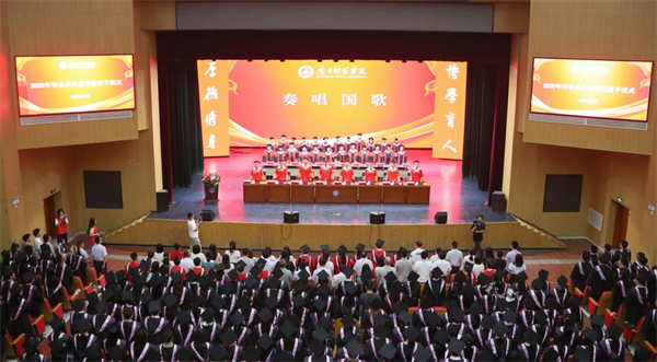 毕业典礼在庄严的国歌声中拉开帷幕。