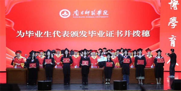 叶廷峻宣读《南昌师范学院关于表彰2025届毕业生“三好学生”“优秀学生干部”“优秀毕业生”的决定》,高翔宣读《南昌师范学院关于准予2025届普通本科学生毕业、结业、结业转毕业的决定》,徐斌宣读《南昌师范学院关于2025届普通本科生学士学位授予情况的决定》。