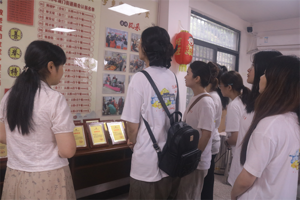 实践队在黄酬门与当地阿姨共舞打鼓,队员们手持鼓槌融入民俗活动,鼓声与笑声交织,青春朝气与乡土热情碰撞,不仅搭建起代际情感桥梁,更让民俗文化在青年参与中焕发生机,使队员体会到乡村文化的温度与活力。