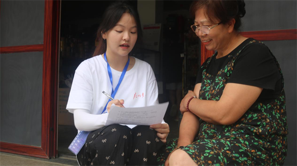 实践队开展环境整治与移风易俗活动,分组清理城门街道垃圾,切实改善人居环境;深入社区发放问卷并开展访谈,积极倡导文明新风、反对铺张浪费等理念。活动中,村民主动参与文明习惯交流,实践队以环境“塑形”与文明“铸魂”双重举措,推动乡风文明建设走深走实,助力乡村文明风貌提质升级。