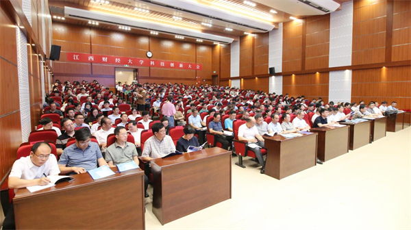 7月9日上午,江西财经大学召开首届科技创新大会。本次大会旨在凝聚创新力量,推动学校科技创新工作迈向新台阶。大会由校党委书记刘耀彬主持,校长邓辉作主旨报告,江西省科技厅党组成员、副厅长陈金桥出席会议并致辞。全体在家校领导和党委常委出席会议。各职能部门负责人,各学院院长、党支部书记及科研副院长,实体科研机构负责人,创新团队负责人,在研国家级课题负责人,智库工作者代表、在外挂职人员等共280余人参加会议。