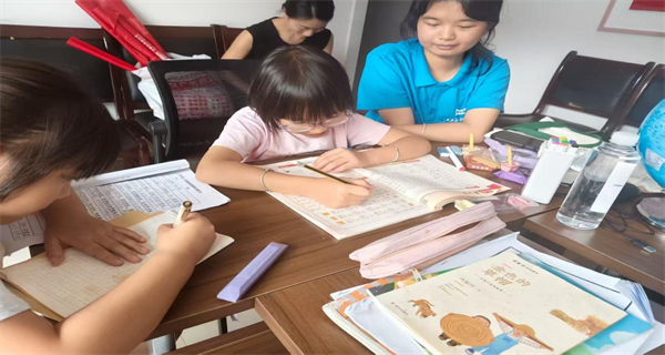 教育是点亮希望的火种,亦是实践团开展此次活动的核心抓手。在社区提供的宽敞活动室里,志愿者们化身耐心细致的“小老师”,为社区里的小朋友量身定制了一对一课业辅导方案。面对孩子们在数学公式里的困惑、语文课文中的迷茫,志愿者们俯下身来逐题讲解,用生动的比喻化解抽象的知识点,用鼓励的眼神驱散学习的畏难情绪。孩子们眼中闪烁的求知光芒,成为这个夏天最动人的风景。