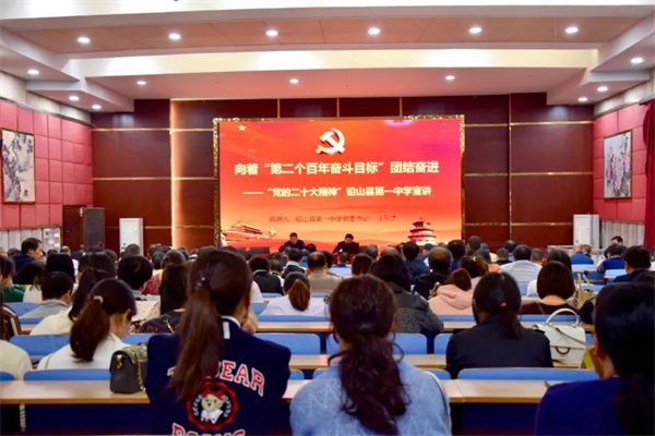 11月8日下午,铅山一中召开了党的二十大精神宣讲会。会议主题为“向着‘第二个百年奋斗目标’团结奋进”。此次宣讲会由铅山一中党委书记汪东才主讲,全体教职工参加会议,会议由铅山一中党委副书记、校长朱文辉主持。