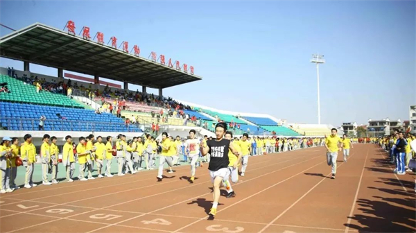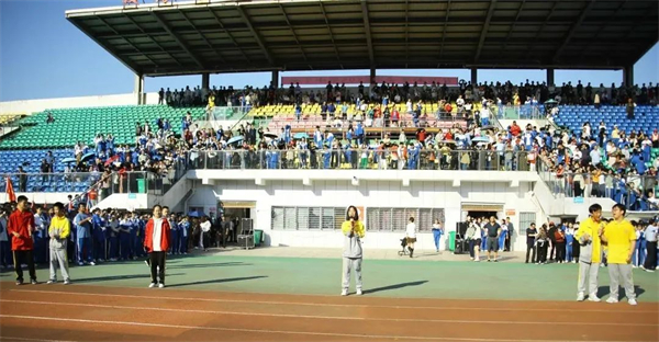 全校各班以跑操的方式有序进场。同学们身着艳丽的校服,迈着矫健的步伐,响亮的口号展示了学生风采,创意的方阵凸显了班级特色。