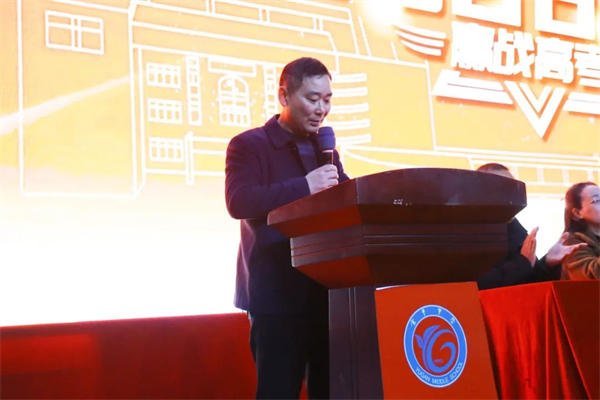 副校长艾志红主持大会,他希望全体同学要牢记老师、家长的嘱托,以百倍的精力、顽强的意志去冲刺高考,乘长风破万里浪,决战六月,题名金榜!