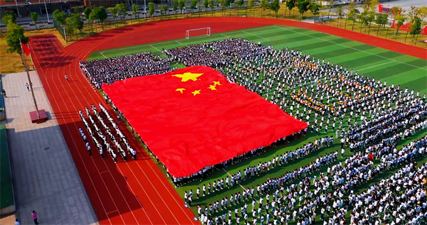南城县第二小学四千多名学生庆六一“童心向党 同声歌唱”红歌会活动航拍画面 曹旭摄