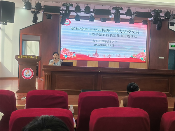 6月29日,吉安市陈予娟名校长工作室以“管理赋能与专业提升”为主题开展专题研修。吉州区教体局党委委员、总督学郑钰娟到场指导,通过述职交流、技能培训、总结表彰等环节,为学校高质量发展聚智赋能。