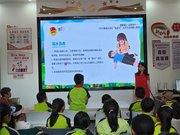 为筑牢暑假防溺水安全防线,让家长安心、孩子舒心,8月初,吉安市新村小学联合共青团吉州区委、吉州区青学联、新村社区,邀请大学生“返家乡”志愿者,共同开展防溺水安全讲座。