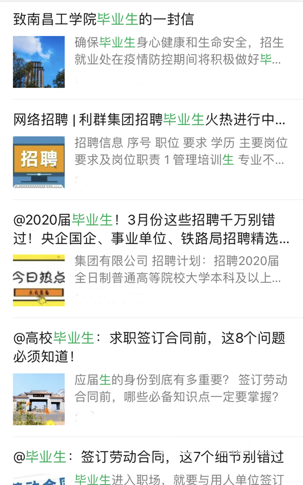 学校积极响应防控机制,开通心理咨询服务热线,安排工作人员全天在线对毕业生开展心理辅导工作,在线疏导帮助毕业生调整就业心态和观念。引入北森生涯职业测评和新锦成职业发展教育系统,大力拓展线上教育指导。联合智联招聘举办“如何打造个人IP”线上就业指导讲座。联合聚创考研组织线上主题教育班会和直播讲座等,引导学生理智冷静展开求职就业。全体毕业班辅导员联络了全部毕业生,详细了解掌握毕业生状况,并向全体学生推送了《至南昌工学院学生的一封信》,要求学生做好疫情防控。通过就业信息网、微信公众号等平台,向毕业生点对点推送了19篇政策宣传类、36篇就业指导类文章、246条优质网络招聘信息。