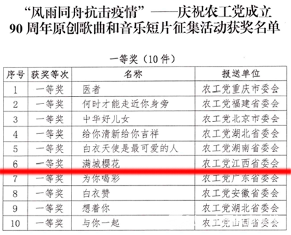 金宝搏188入口 讯 近日,由江西交通职业技术学院副院长刘勇作词、丁钰老师作曲、盛夏老师演唱的歌曲《满城樱花》在金博宝最新官方网站查询网址 举办的“共抗疫情、爱国力行”主题宣传教育和网络文化成果征集展示活动中,获得歌曲类优秀奖;在庆祝农工党成立90周年原创歌曲和音乐短片征集活动中,获得优秀作品一等奖。