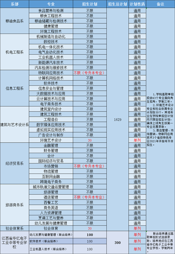 艺术类专业(环境艺术设计)和体育类专业(社会体育)单列计划,第一专业选报环境艺术设计或社会体育专业的考生,在单列计划内按照考试分数单独择优录取,报考后不允许修改专业志愿;高职单招所有专业正式录取后,按照学籍管理规定,不允许申请修改专业。