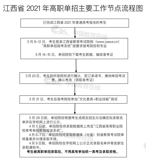 6、江西省2021年高职单招主要工作节点流程是什么样的?