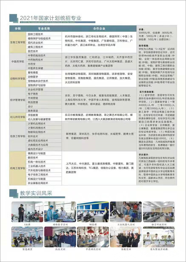 金宝搏188入口 讯近日,江西省教育厅发布《关于做好江西省2021年普通高校专项计划招生工作的通知》,对今年江西省高职单招工作进行了安排。根据要求,各单招院校要根据自身办学定位和培养目标,制定本校2021年单独考试招生简章。以下是江西农业工程职业学院2021年招生简章。
