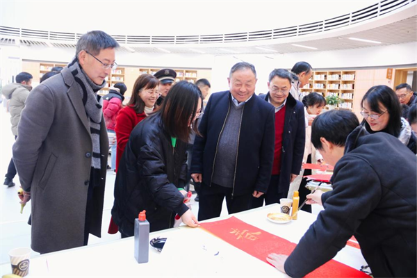 为深入贯彻学习习近平文化思想,传承和弘扬中华优秀传统文化,丰富校园文化生活,营造新春佳节的庆祝氛围,1月6日上午,学院在图书馆举办了以“文墨迎春 典韵启新”为主题的迎新春送春联活动。学院党委领导班子成员方文龙、肖绚、李雄德、金小军、朱辉球、张翔、杨晶,以及部分中层干部、教职工代表参加了此次活动。