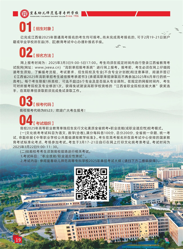宜春幼儿师范高等专科学校2025年单招简章
