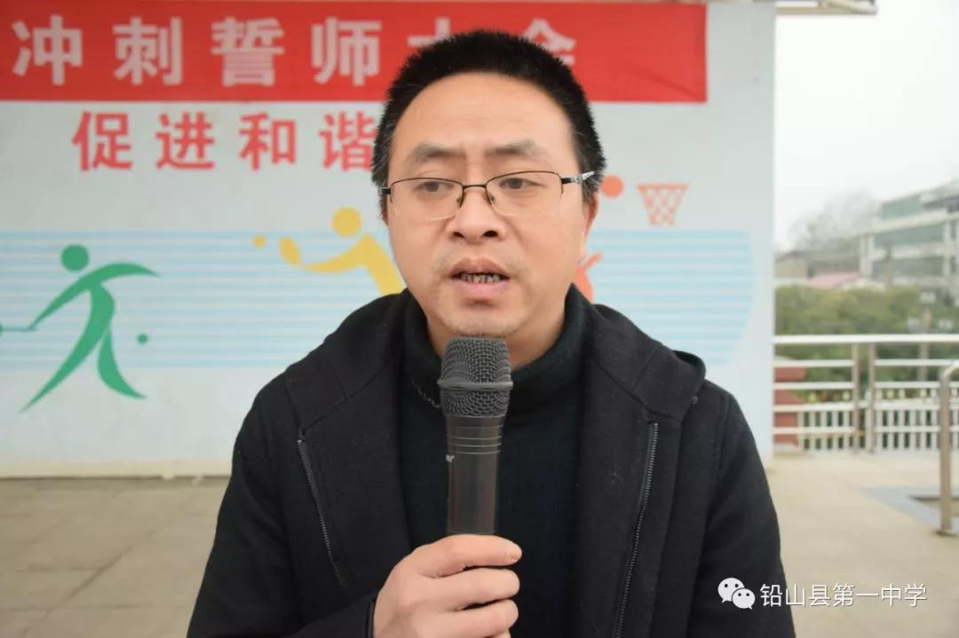 随后,一中校长汪东才作了高考百日誓师大会动员报告。汪校长指出,高三年级全体教师是学校最辛苦的人,在你们身上,承载着社会的关注和家长的重托,承担着全校上下的希望和期盼。希望大家咬紧牙关、竭尽所能、团结协作、奋力拼搏。“甘将心血化时雨,润出桃花一片红”。 汪校长鼓舞全体高三学子,以信心,以耐力和压倒一切的气势,以永不言败的劲头扬起乘风破浪、直济沧海的风帆,力争2019年高考取得优异成绩。