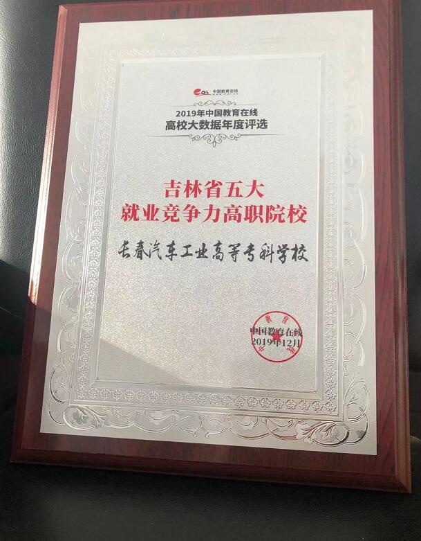 2019年度“高校大数据年度评选”获奖榜单公布。长春汽车工业高等专科学校获评“2019年吉林省五大就业竞争力高职院校”、“2019年全国网络搜索热度50强高职院校”奖。