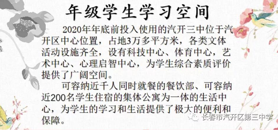 2020级新高一同学们,欢迎来到汽开三中,这里定将成为你不悔的选择,一定是你梦想成真的好地方。