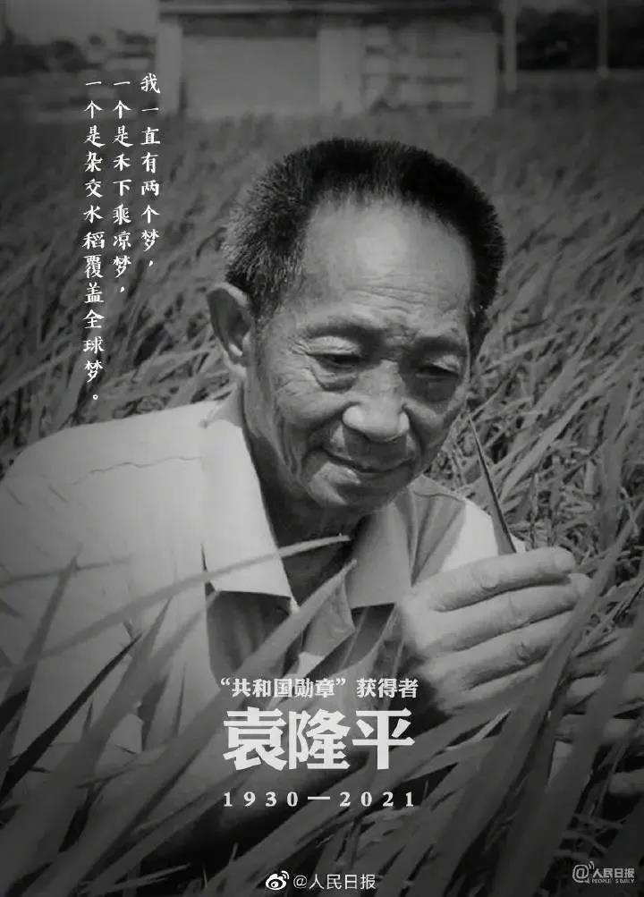5月22日13时07分,“共和国勋章”获得者、中国工程院院士、国家杂交水稻工程技术研究中心主任湖南省政协原副主席袁隆平,因多器官功能衰竭在长沙逝世,享年91岁。