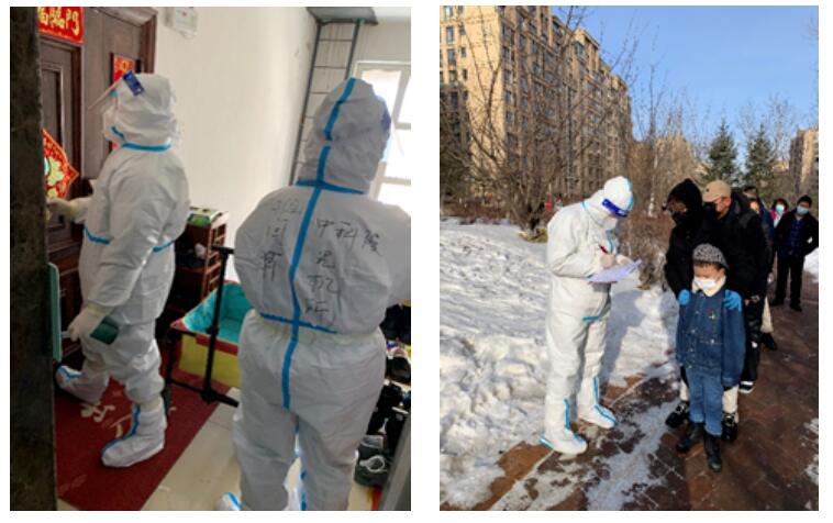 光机所志愿者突击队被分别编入核酸检测三组和四组,2组肩负着7栋楼共计370余户的挨户上门通知、每家每户登记、人人核酸检测的任务。由于挨户通知极耗体力,组里征求意见看谁愿意承担这项工作,闫肃同志毫不犹豫的举起手。为了能够争取时间,她每次坐电梯到顶楼后,直接跑步到下一层,就这样一层一层、一单元一单元、一栋一栋的跑完了200余户。为了方便居民检测,核酸检测点每一栋楼检测结束后,需要把桌子与检测物品再搬到另一栋楼下,在初春寒风中,52岁的王广彦同志前后奔波,抢先搬走桌椅等沉重物品,让组里医护人员可以轻装上阵。终于历时5个小时,完成了900余人的集中核酸检测。王梦迪同志作为小组的核酸登记人员,不仅快速的完成了200余户的登记,同时对家中有老人或病人无法下楼做核酸的家庭进行了详细记录,在集中检测结束后,继续与医护人员一起,为小区16户特殊人员进行上门核酸检测服务,确保不落一人的完成任务。