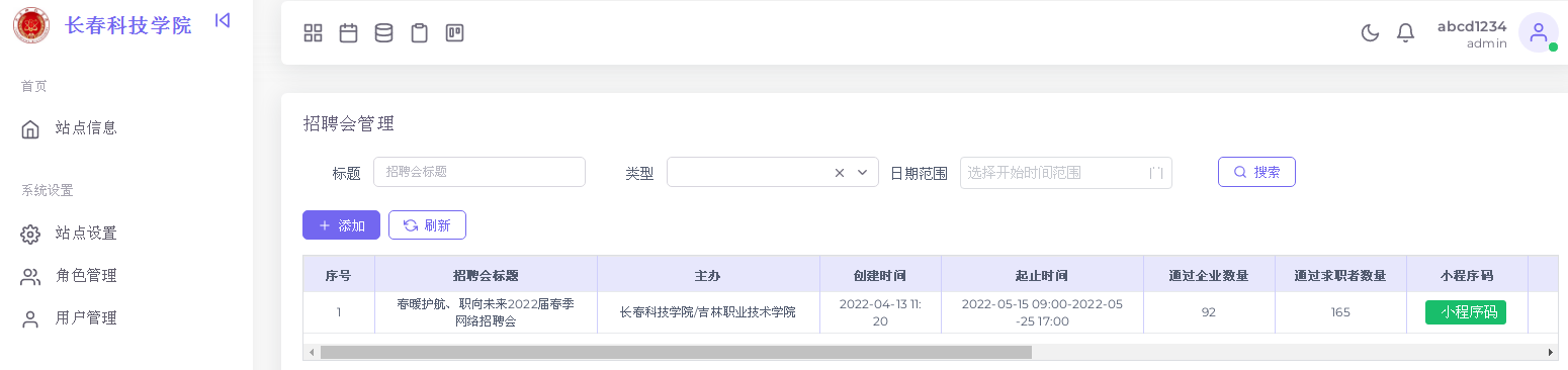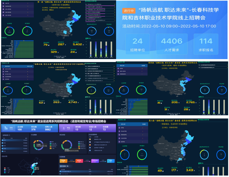 活动期间,长春科技学院相继举行了就业创业政策宣传、系列专场网络招聘、就业供需对接、访企拓岗促就业、精准推送招聘信息和就业指导服务等6项活动。携手吉林职业技术学院,连续一周时间,每天为各分院和未就业毕业生举办了本专科医药类、就业困难群体类、语言和视觉类、智能制造和生命科学类、经管和建筑类、专科类、本专科综合类等7波次专场网络招聘会,共有453家用人单位参加招聘活动,提供招聘岗位31211个;毕业生566人参加了各专场招聘会,投递简历410份,有296人与用人单位达成了就业意向。