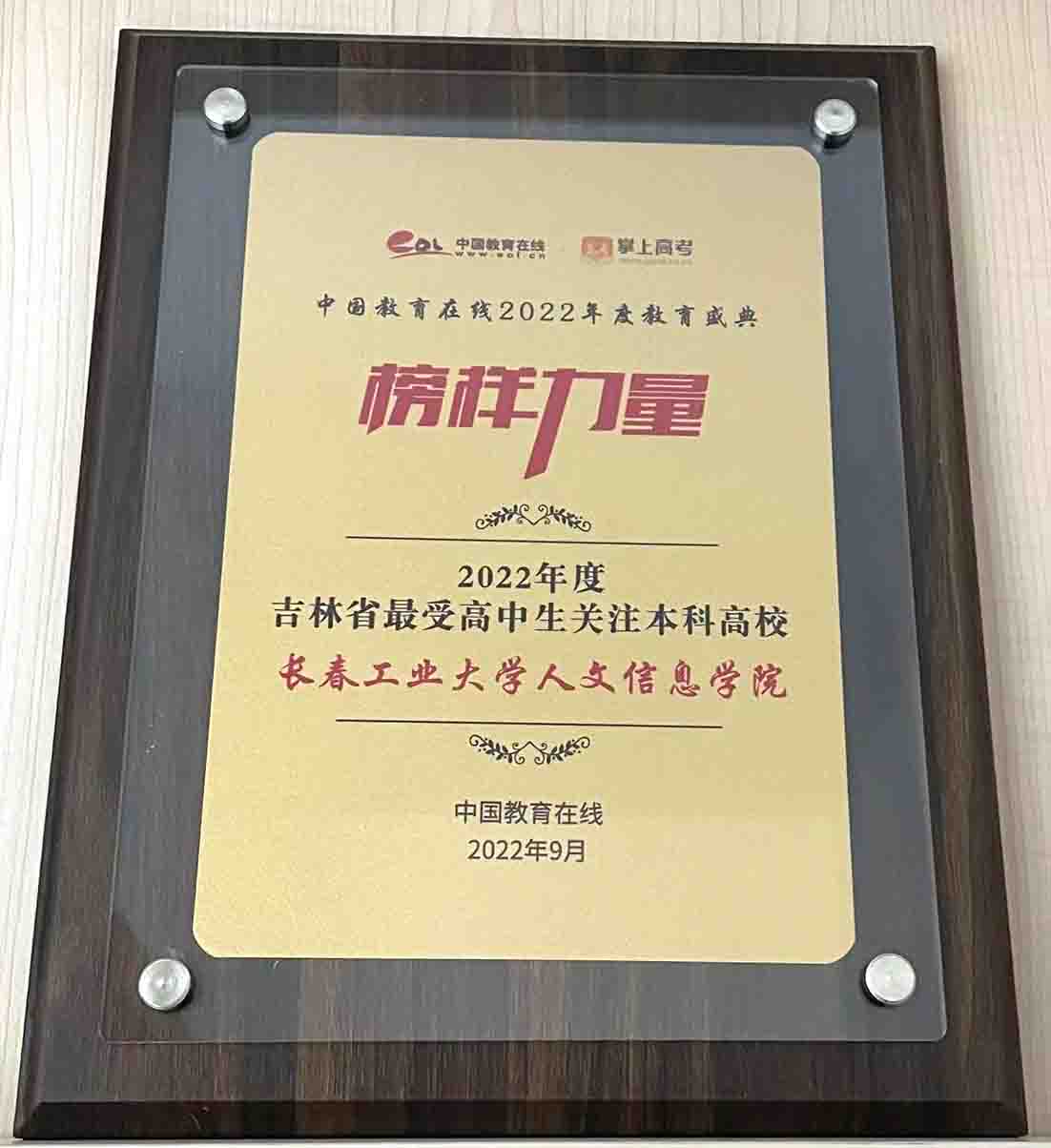 长春工业大学人文信息学院荣获“2022年度吉林省最受高中生关注本科高校”奖