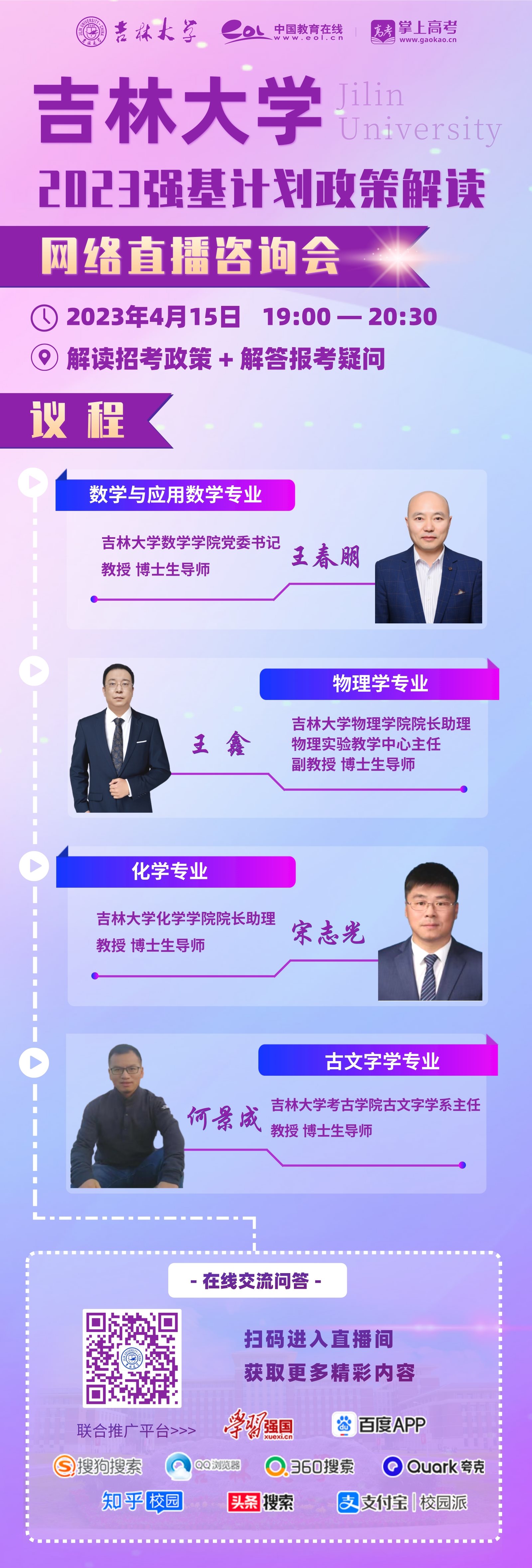 权威|吉林大学2023年强基计划政策解读网络直播咨询会,明晚直播间见!
