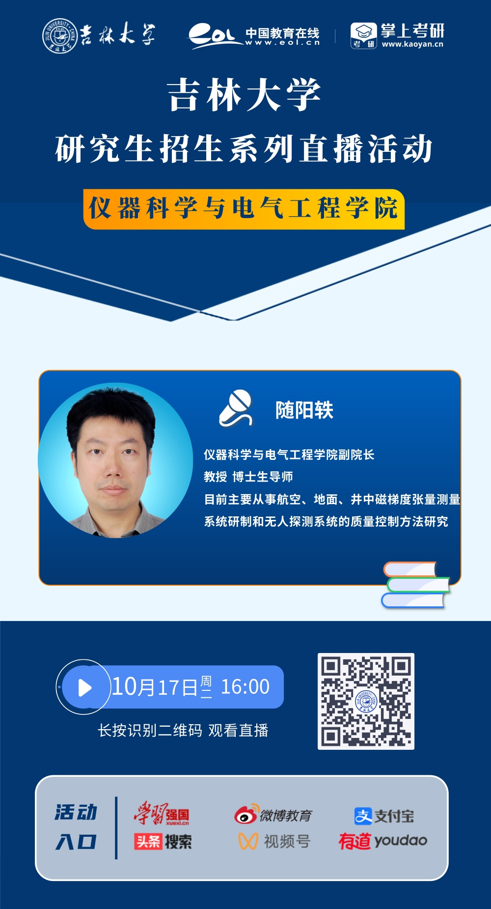 直播预告|吉林大学研究生招生系列直播活动——仪器科学与电气工程学院