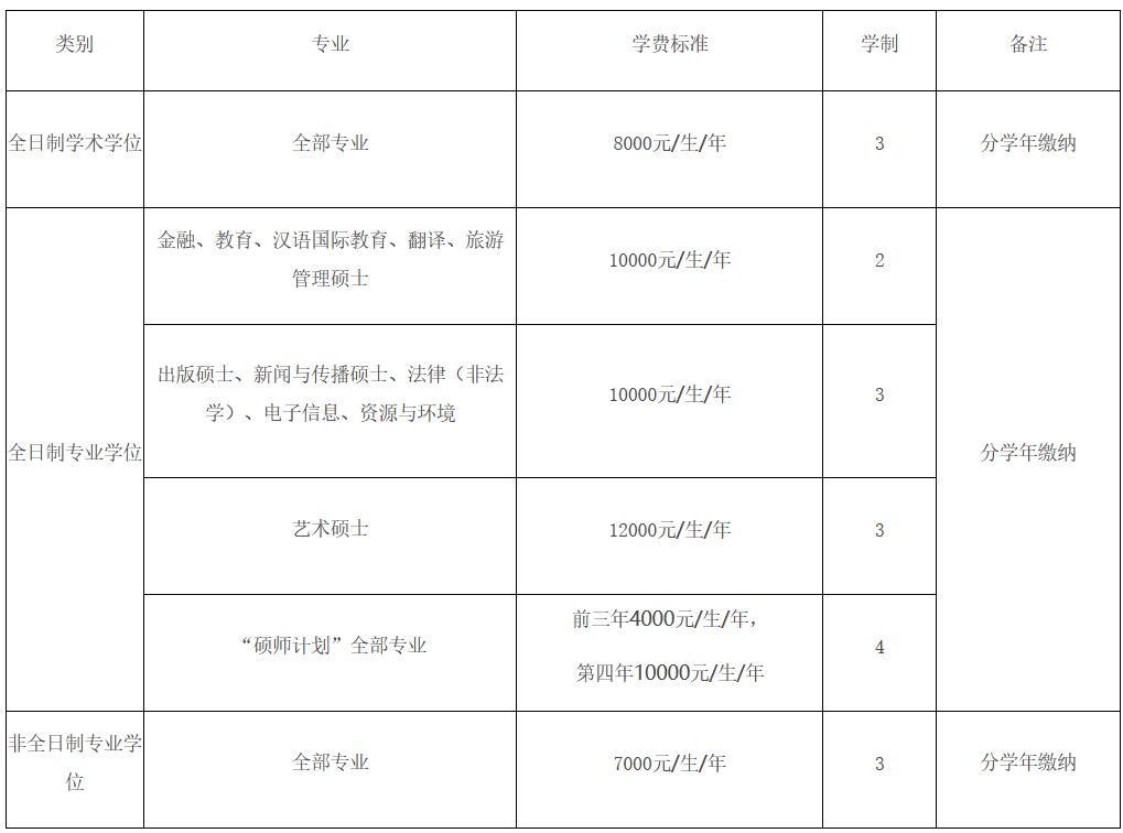 1.学费、学制简介