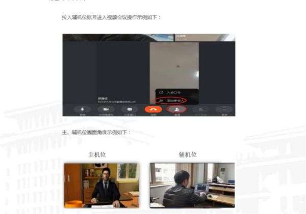 面试过程中:主机位摄像头、话筒都打开。辅机位摄像头打开,开启静音状态并关闭设备扬声器。