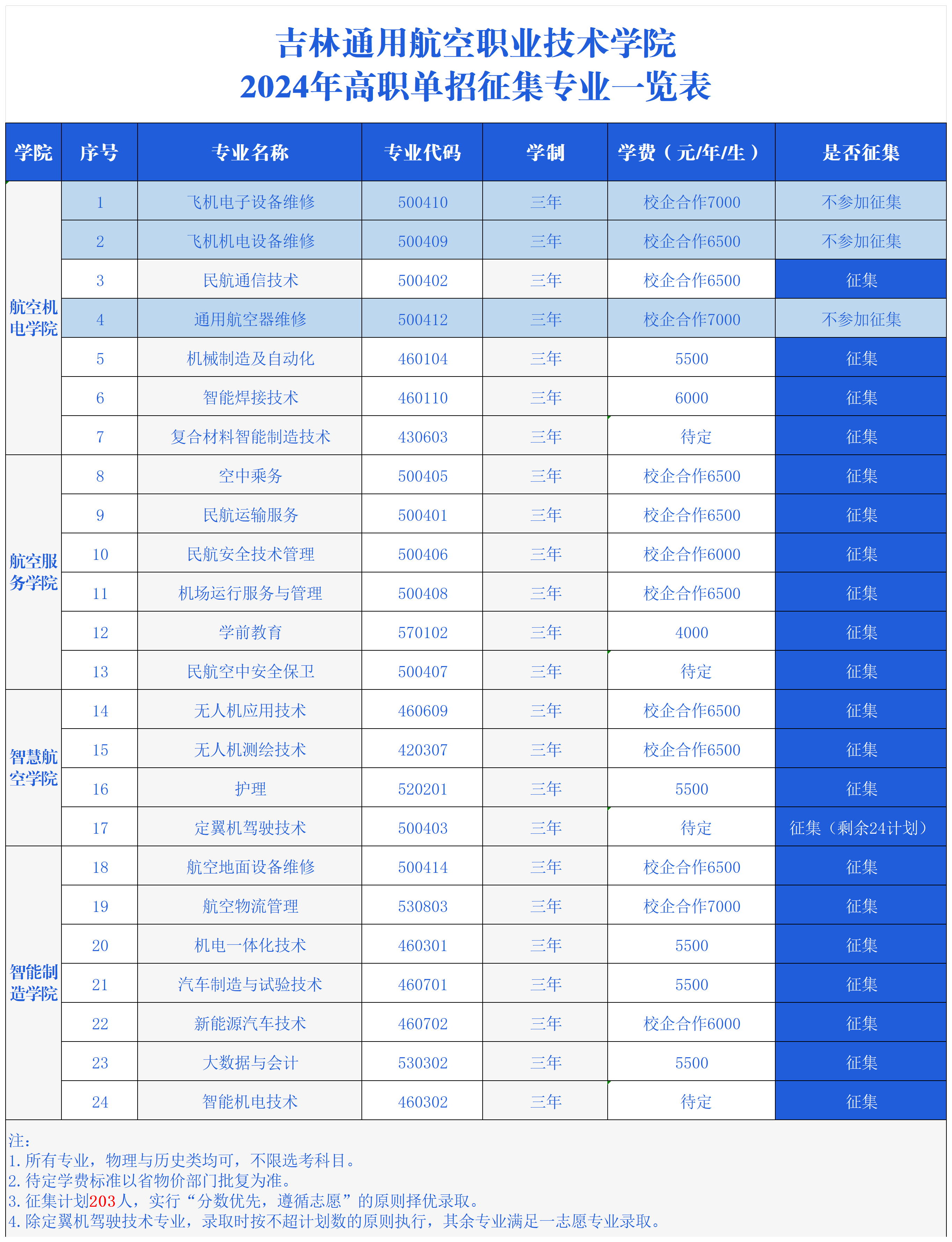 关于吉林通用航空职业技术学院2024年高职单招征集志愿报名相关通知