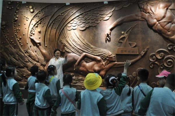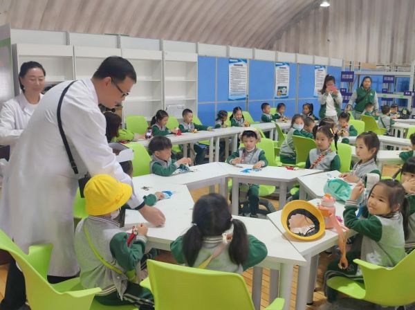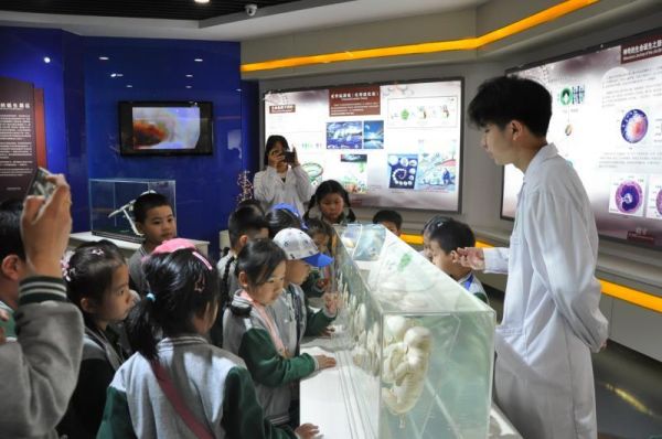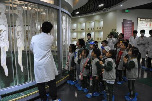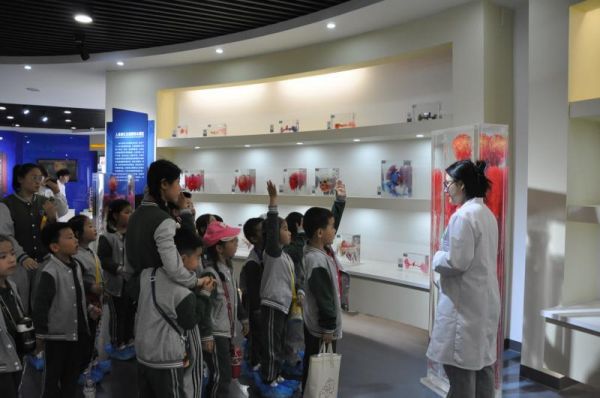 小朋友们在学校生命科学馆,参观了从生命的诞生、人体的系统到自然与生命、医学与生命,最后到生命的意义等九个展区的内容。