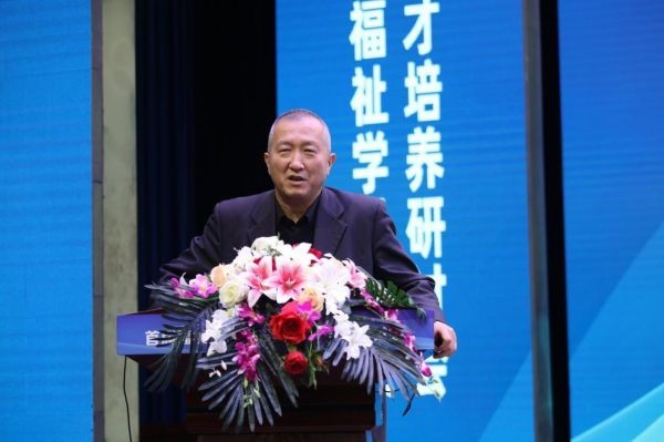 学校校长张兴海代表学校致辞,他介绍了学校福祉学科的建设情况,系统梳理了中国福祉学的发展脉络,详细阐述了马克思主义视阈下的福祉理论体系和学科建设构想。