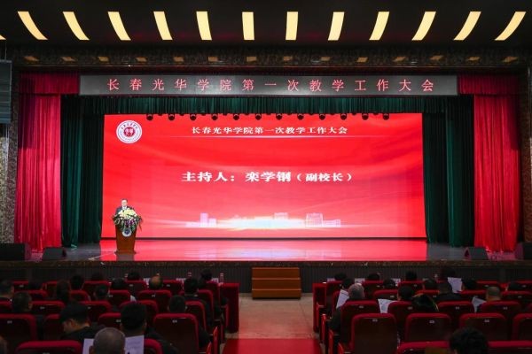为加快培育教学高质量文化,推进学校高质量发展,12月27日,长春光华学院在北区艺术剧场召开第一次教学工作大会。董事长康启鹏,校长李晓光,党委书记、督导专员闫峰,副校长栾学钢,副校长陈铁,副校长兼后勤服务公司总经理厉刚,党委副书记兼纪委书记兼副校长李春生,副校长张勇,党委副书记兼副校长高海英出席,各职能部门副处级以上干部、各教学单位院长(主任)、副书记、副院长(副主任)、系主任、全体教师、辅导员、校院教学督导等参加会议。大会由栾学钢副校长主持。
