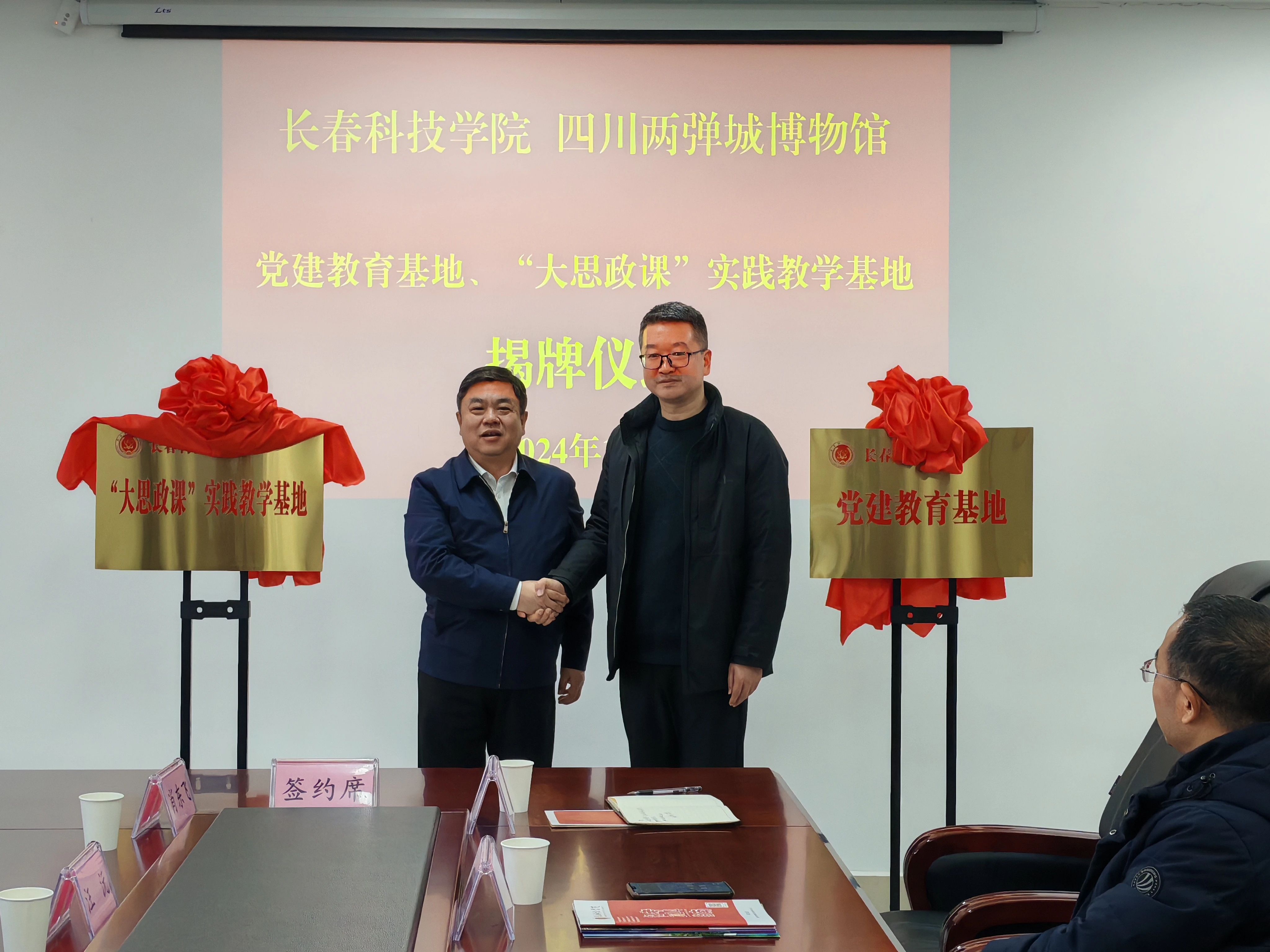 长春科技学院与四川两弹城博物馆共建“大思政课”实践教学基地座谈会暨签约、颁发聘书和揭牌仪式会场