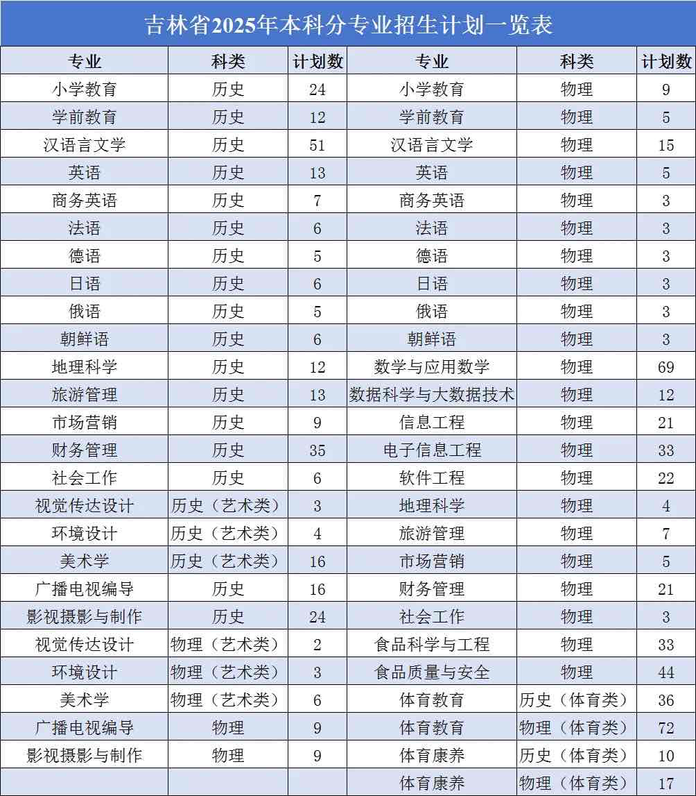 吉林师范大学博达学院2025年本科分省分专业招生计划