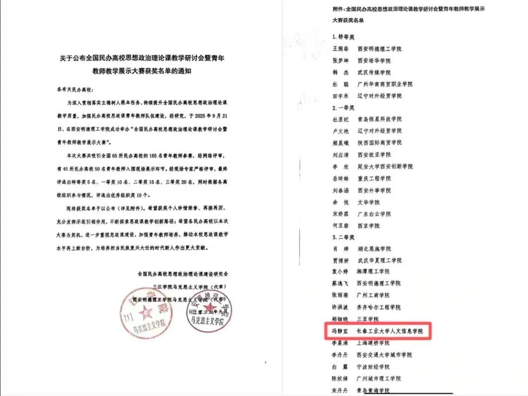 此次获奖是长春工业大学人文信息学院在全国性思政课教学竞赛中的重要突破。近年来,长春工业大学人文信息学院深入贯彻落实习近平总书记关于思政课建设的重要指示精神,持续推进思政课改革创新,在思想政治教育领域取得了一定成果。未来,学校将推动马克思主义学院以此次大赛为契机,进一步加强思政课教师队伍建设,深化教学改革创新,将时代热点、地方特色和学生需求融入课堂,打造更有质量的思政“金课”,努力开创思想政治教育工作的新局面,为培养担当民族复兴大任的时代新人贡献力量。
