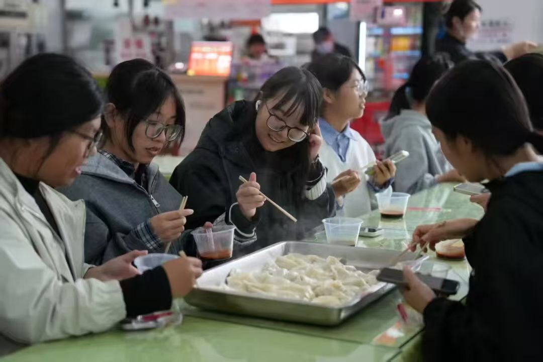 出锅后的饺子不仅被端上餐桌,还被同学们细心分装,为节日期间仍坚守岗位的保安、宿管等工勤人员送去一份“热腾腾的祝福”,用实际行动传递感恩与尊重。