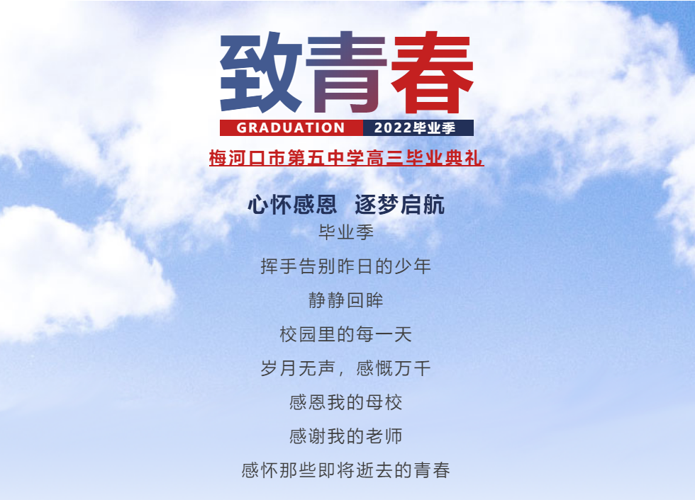梦逐沧海,翼破长空,披荆斩棘,乘风破浪!五中岁月,抹不去的是师恩难忘;时光流淌,忘不掉的是三载同窗。相信梅河口市第五中学高三学子在2022年高考中定会金榜题名,再创辉煌!