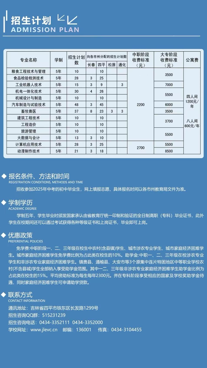 吉林工程职业学院2025年五年一贯制高职招生简章