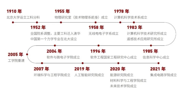 上述文章还回顾了上世纪初京师大学堂启工学教育之门,培养了一批高等科学技术人才;新中国成立后北大创建了新中国第一个力学学科,中国力学本科教育由此启程;2005年北大重新组建工学院;近两年,北大相继成立多个新学院:人工智能研究院、能源研究院、材料科学与工程学院、未来技术学院、集成电路学院。