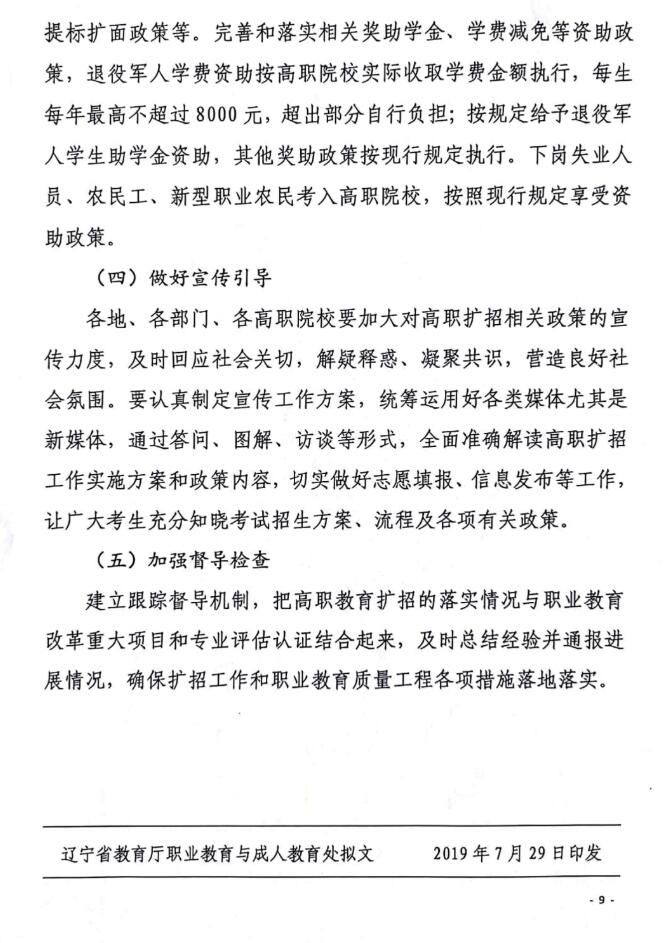 辽宁省教育厅等六部门关于印发《辽宁省高职扩招专项工作实施方案》的通知(辽教发[2019]94号)